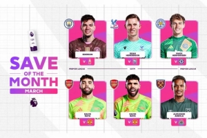 体育资讯3月27日讯 英超官方公布3月最佳扑救候选,拉亚战曼联2次扑救入围,埃德森、亨德森在列。